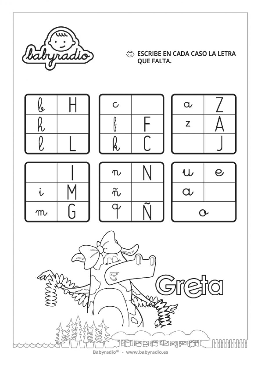 Observa los espacios en blanco y rellena con la letra que corresponde. Ficha educativa para niños del primer ciclo de primaria.